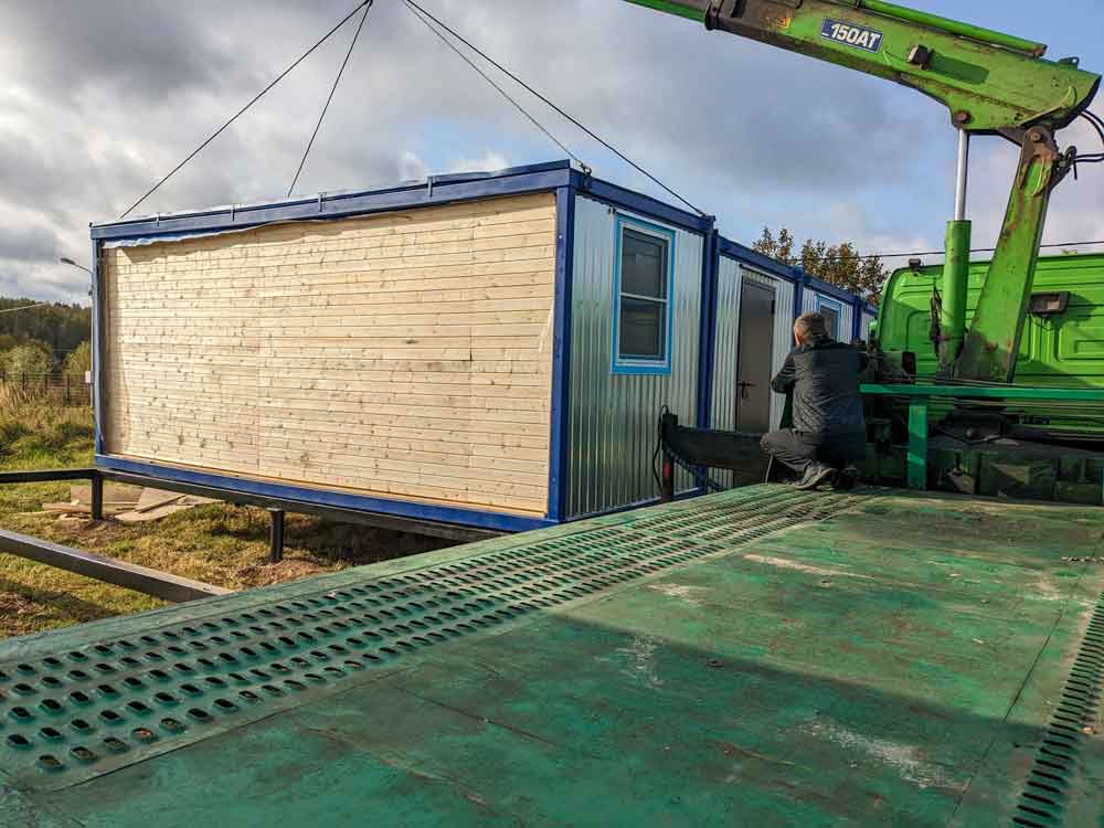 Фотографии погрузки блок-контейнера на наш автотранспорт