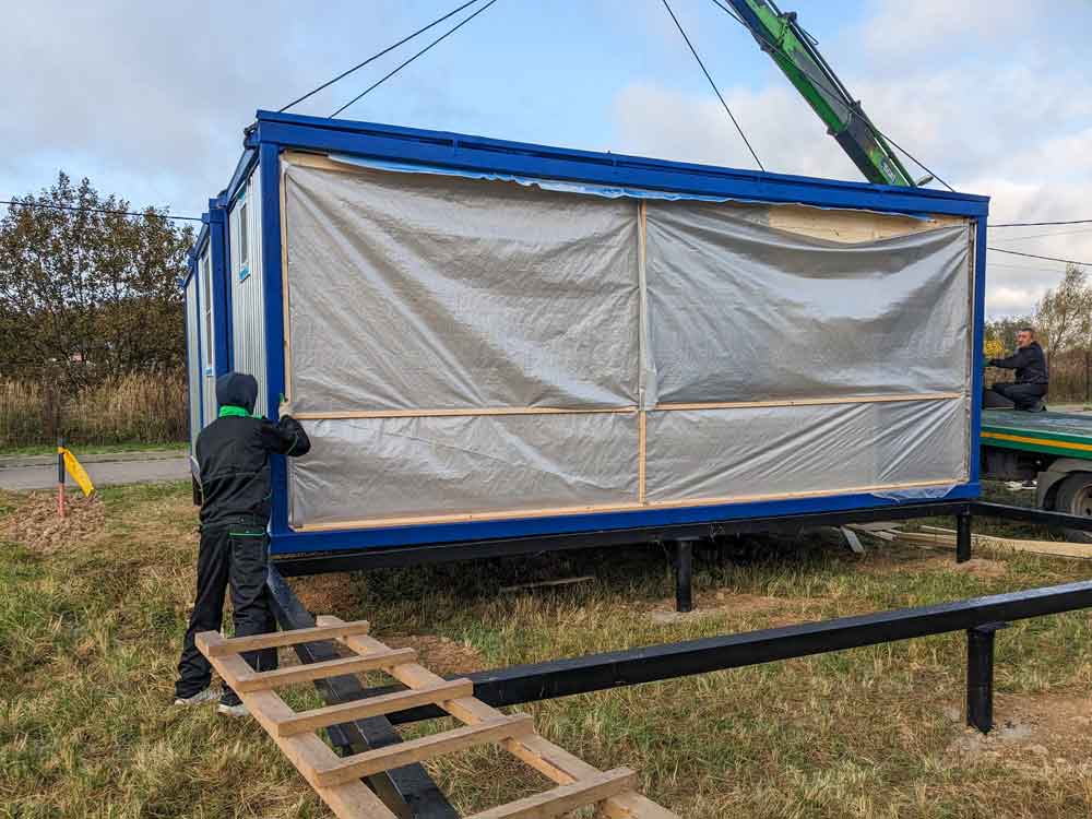 Мы не только доставляем продукцию до клиента, но и устанавливаем в то место которое требуется, можем устанавливать на разные виды фундамента, например сваи или бетонные блоки.